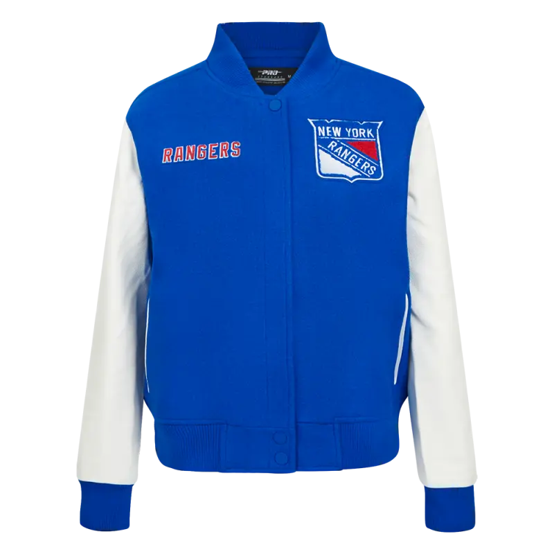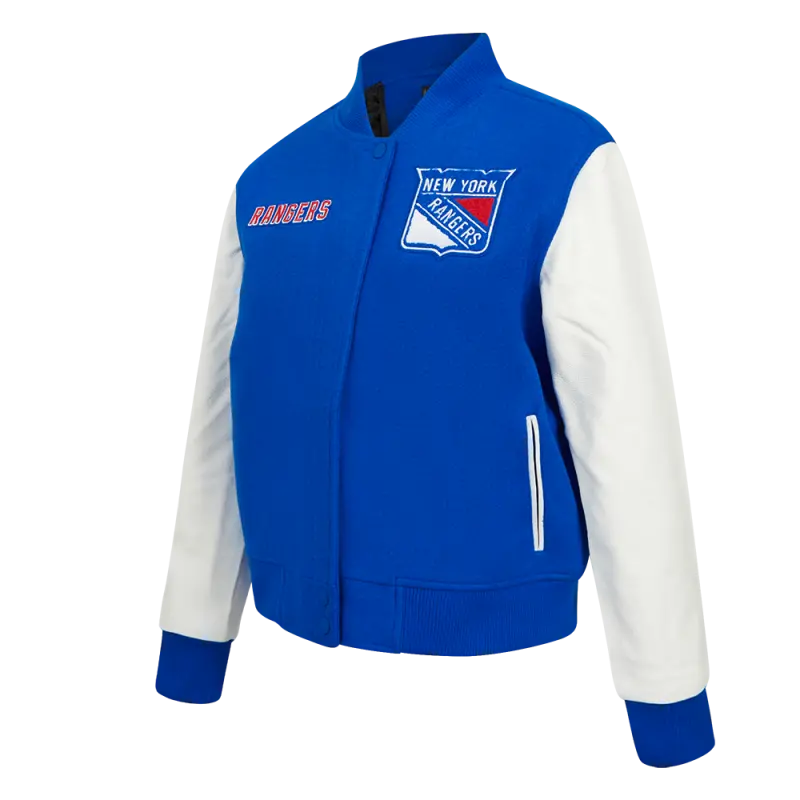 NHL NEW YORK RANGERS CLASSIC WOMEN’S VARSITY JACKET (ROYAL BLUE\/WHITE)