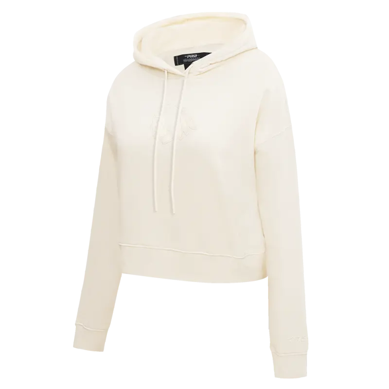 NHL CHICAGO BLACKHAWKS NEUTRAL WOMEN’S CROPPED PULLOVER HOODIE (EGGSHELL)