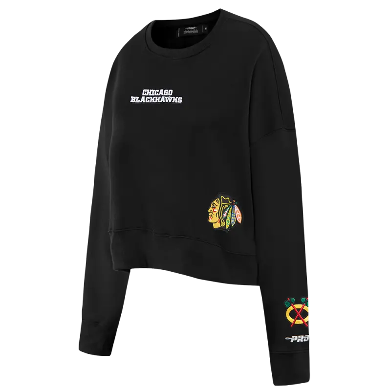 NHL CHICAGO BLACKHAWKS RETRO CLASSIC WOMEN’S RIB CREWNECK (BLACK\/RED\/BLACK)