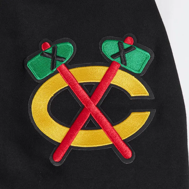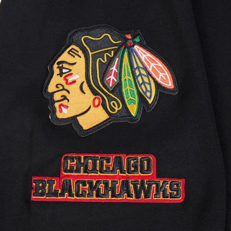NHL CHICAGO BLACKHAWKS CLASSIC CHENILLE MEN’S PO HOODIE (BLACK)