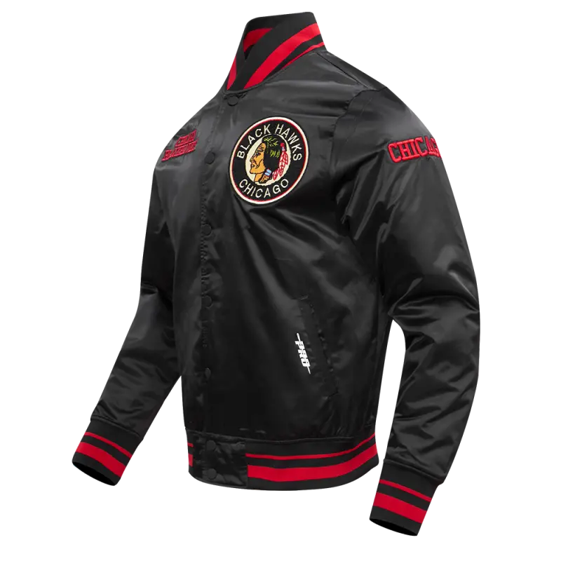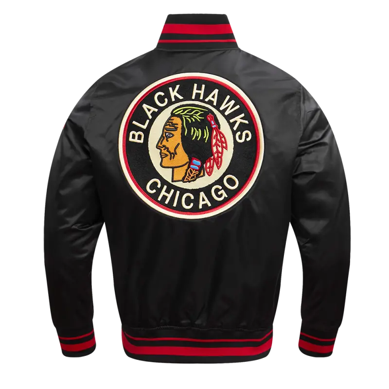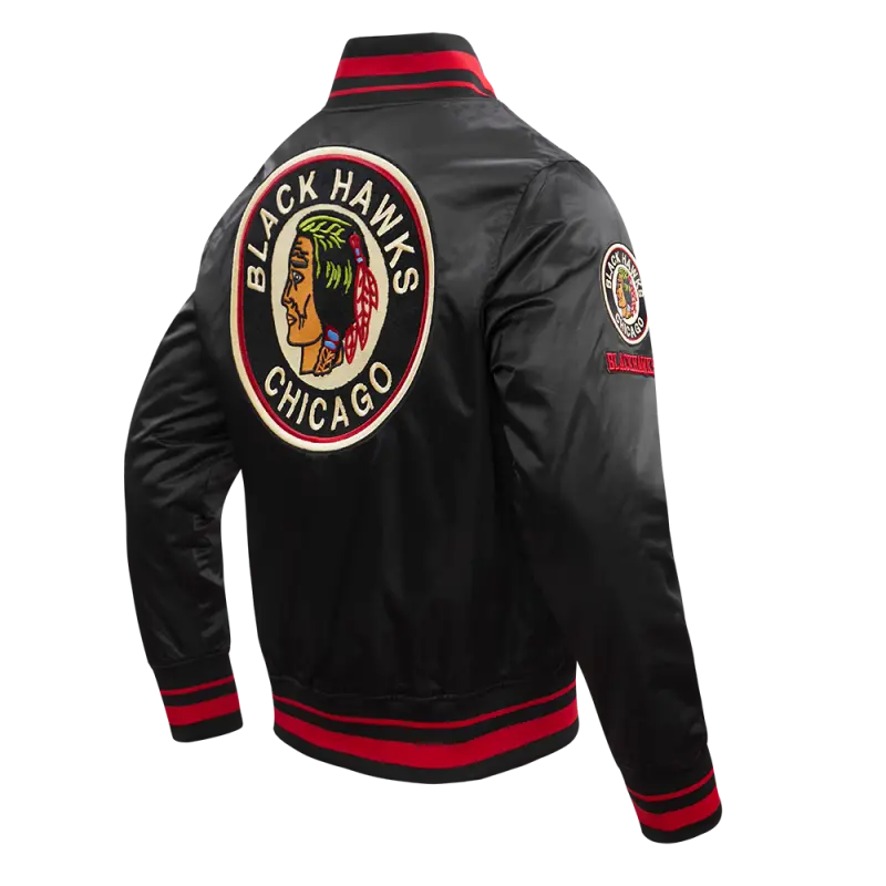 NHL CHICAGO BLACKHAWKS RETRO CLASSIC RIB SATIN JACKET (BLACK\/RED\/BLACK)