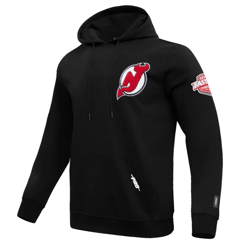 NHL NEW JERSEY DEVILS CLASSIC CHENILLE MEN’S PULLOVER HOODIE (BLACK)
