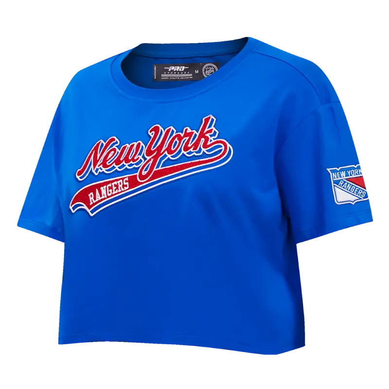 NHL NEW YORK RANGERS SCRIPT TAIL WOMEN’S SINGLE JERSEY BOXY TEE (ROYAL BLUE)