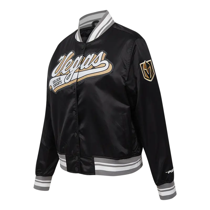 NHL VEGAS GOLDEN KNIGHTS SCRIPT TAIL WOMEN’S SATIN JACKET (BLACK\/GRAY)